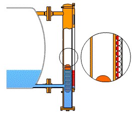 換熱器工作介質為易汽化的液體,壓力從真空狀態(tài)到2.5Mpa之間,溫度從40℃到390℃之間,因此液位計的日常維護及指示的準確性,對壓力容器的安全運行起到至關重要的作用。