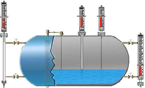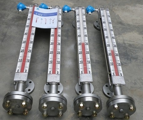 根據浮力原理,浮子在測量管內隨液位的升降而上、下移動,浮子內的永久磁鋼通過耦合作用,驅動紅、白色翻柱翻轉180°,液位上升時翻柱由白色轉為紅色,下降時由紅色轉為白色,從而實現液位指示。