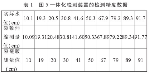 我們把圖5所示的一體化檢測裝置進行了水位檢測實驗,其檢測結果與實際水位值見表1。