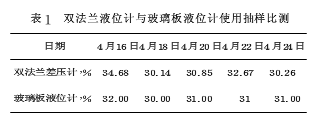 我公司200m³液氨球罐上裝有一臺3851DP雙法蘭差壓液位計(量程:-62.04~20.79KPa)、一臺磁翻板液位計和一臺玻璃板式液位計。磁翻板液位計由于其腔體未能定期檢修使磁柱顏色不變,因而無法檢測;另一臺雙法蘭差壓液位計運行穩(wěn)定,但測量值同玻璃板式液位計顯示有誤差。2014年4月儀表人員抽樣比測記錄數(shù)據(jù),見表1所示。因老式玻璃板式液位計沒有詳細刻度,該數(shù)據(jù)為粗略目視值。