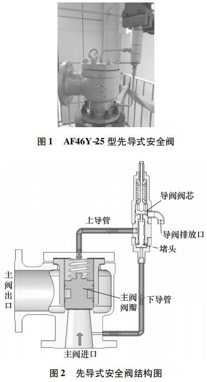 鍋爐水液位計常見的故障包括: 主閥導(dǎo)閥泄漏、導(dǎo)閥超壓不動作、主閥未隨導(dǎo)閥動作。主閥導(dǎo)閥泄漏失效原因: 密封面臟污或損傷,零部件卡阻、密封墊圈老化變形; 導(dǎo)閥超壓不動作失效原因: 導(dǎo)閥密封面銹蝕粘合或材料變形、導(dǎo)閥彈簧過緊或卡阻、導(dǎo)閥下導(dǎo)管堵塞; 主閥未隨導(dǎo)閥動作失效原因: 主閥運動卡阻、導(dǎo)閥排氣量過小。然而,安全閥起跳不回座故障在試驗過程及工業(yè)現(xiàn)場也是非常常見的,國內(nèi)對于鍋爐水液位計起跳不回座失效分析的相關(guān)研究較少。本研究以某公司生產(chǎn)的 AF46Y-25 型鍋爐水液位計為研究對象,研究導(dǎo)閥結(jié)構(gòu)并分析其動作過程。在對其開展動作性能試驗時,發(fā)現(xiàn)該安全閥實際回座壓力遠低于標(biāo)準要求,排放時間過長,回座失效。因此,對其進行受力分析,以探討回座失效的原因。