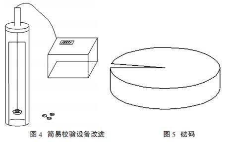 因為振弦式傳感器,*重要的核心就是弦,從基本原理入手,采用加 載砝碼的方法進(jìn)行率定,每個砝碼固定重量為 300g,*多添加砝碼個數(shù) 為 6 個,總量可達(dá) 1800g。砝碼較多時,需要很長時間穩(wěn)定。為了提高系統(tǒng) 穩(wěn)定性,減少系統(tǒng)穩(wěn)定時間,因此對簡易校驗裝置進(jìn)行改進(jìn),如圖 4、圖 5所示。