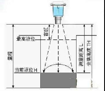 儀表量程指儀表能夠測量的距離,安裝高度TH應小于量程。