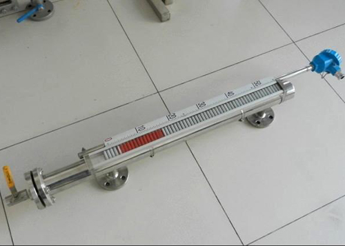 液位計根據浮力原理,浮子在測量管內隨液位的升降而上下移動,浮子內的永久磁鋼通過磁耦合作用,驅動紅、白色翻柱翻轉180’液位上升時,翻柱由白色轉為紅色,下降時,翻柱由紅色轉為白色,從而實現液位的指示。