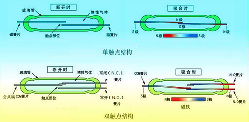 *三:根據現場使用的電壓來選擇合適的干簧管:如通過報警開關的電壓不大,那就可以選擇低壓干簧管,反之亦然。再比如您需要的只是一個閉點信號,則選擇常開型干簧管,反之則用常閉型。