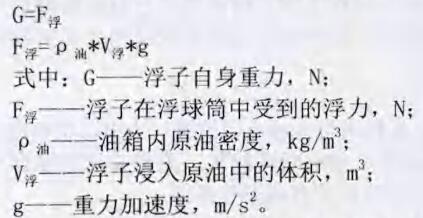 通過上式可以看出,浮球桶進入液體體積約為1/2左右,說明其對于密度為0.92g/c3的中到重質油測量液位非常合適,避免了人工測量產生的人為誤差,更對于測量人員靠近罐口可能產生的危險進行了有效的規避。