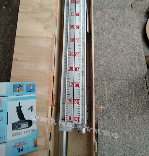 液位計根據浮力原理,浮子在測量管內隨液位的升降而上下移動,浮子內的永久磁鋼通過磁耦合作用,驅動紅、白色翻柱翻轉180’液位上升時,翻柱由白色轉為紅色,下降時,翻柱由紅色轉為白色,從而實現液位的指示。